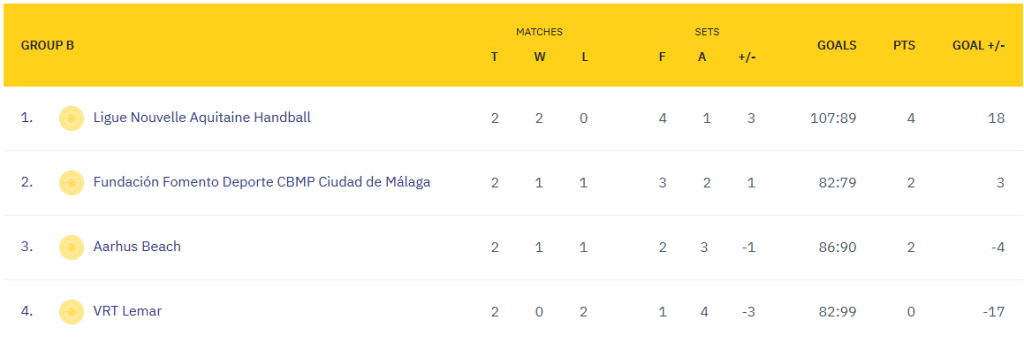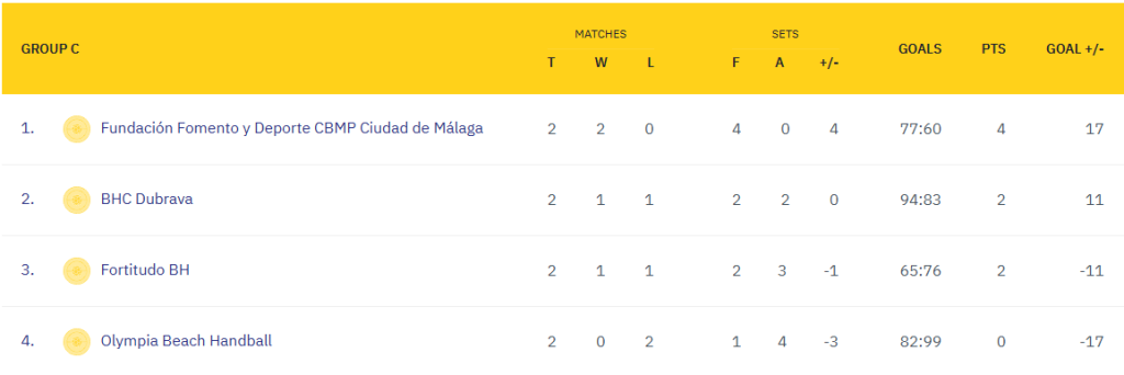 - Jueves, 16 de octubre – 17:15h. | Aarhus Beach 2:1 Fundación Fomento Deporte CBMP Ciudad de Málaga (masculino)
