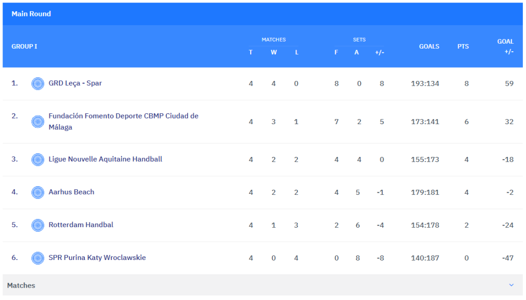 - Sábado, 18 de octubre – 11:00h. | GRD Leça – Spar vs Fundación Fomento Deporte CBMP Ciudad de Málaga (masculino)